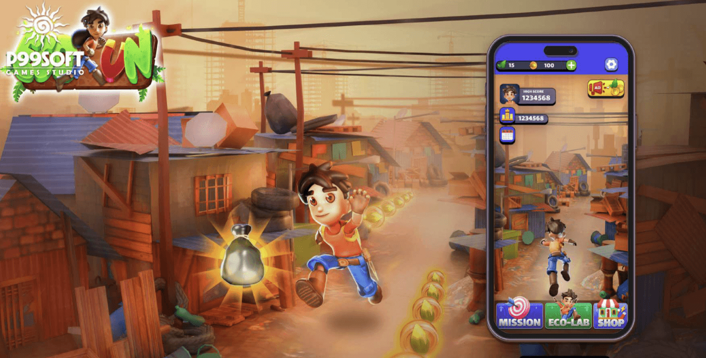 EcoRun is a fast-paced endless runner where players take on the role of a Nature Guardian racing through polluted landscapes, cleaning the Earth and restoring ecosystems. With a vibrant, cartoon art style and socially conscious theme, the game mixes fun mechanics with an environmental message.